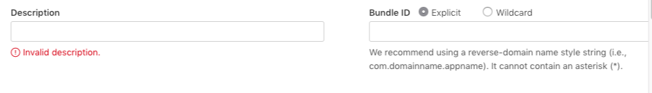 4. 클릭을 하시면, 해당 페이지가 나오는데, Description은, 앱 ID에 필요한 키의 이름, 오른쪽의 BundleID는 올리실 앱의 packageName을 적어주시면 됩니다. 밑에 Capabilities는, 만약 해당 앱에 필요한 기능들이 부착되어 있다면 반드시 클릭을 해주셔야 나중에 앱 실행했을 때에도 실행이 가능하게 됩니다.